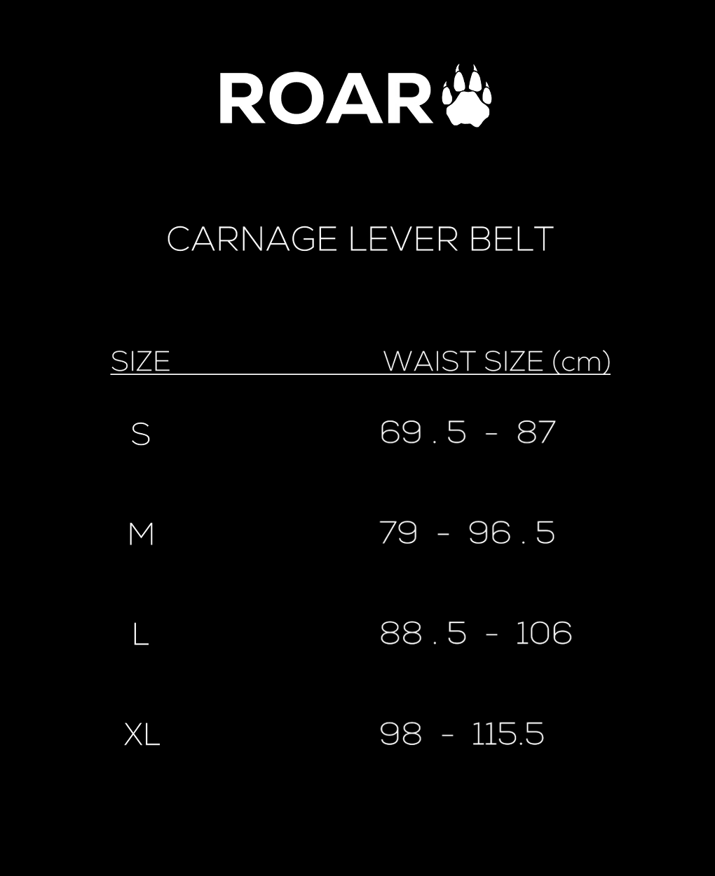 특허청에 디자인 등록 완료된 저희 ROAR GEAR의 시그니처 레버, CARNAGE Lever가 장착되어 1.2cm의 세밀한 단위로 벨트 조임을 쉽고 간편하게 조절할 수 있습니다.